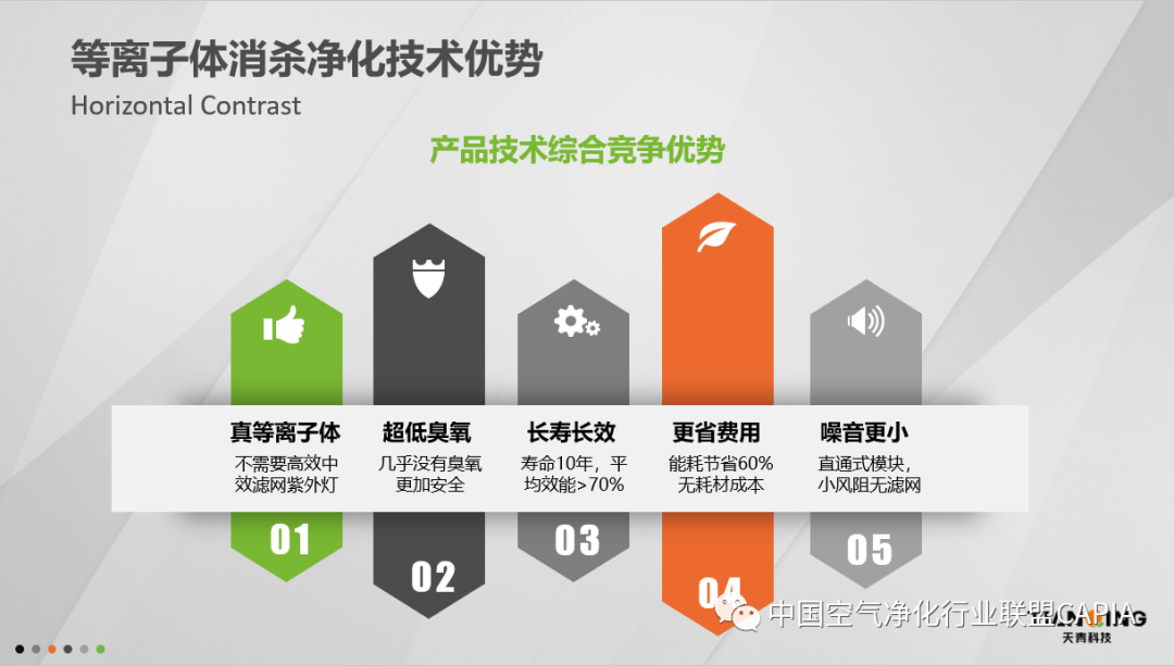 公司独家核心专利——等离子体空气消杀净化技术为主动净化技术,无滤材,发生器寿命长达10年以上,平均效能可保持70%以上,反应器经过维护清洁后,处理效能可恢复到90%以上。臭氧发生量仅为国家安全标准1/33,保证人机共存情况下的安全同时,还留有效果提升的余量。