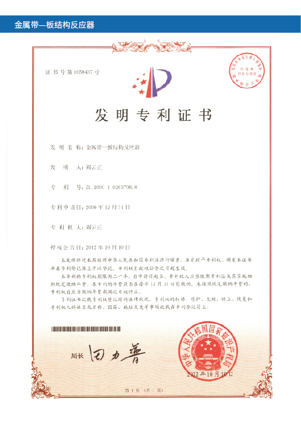 金属带—板结构反应器发明专利