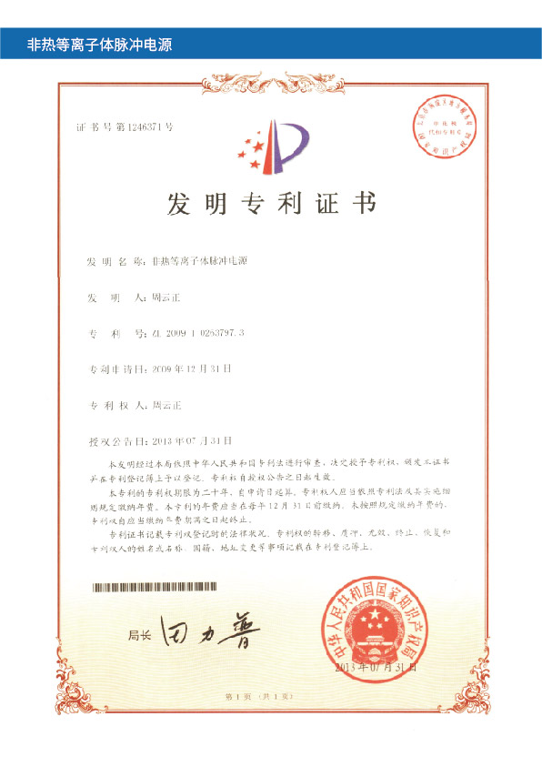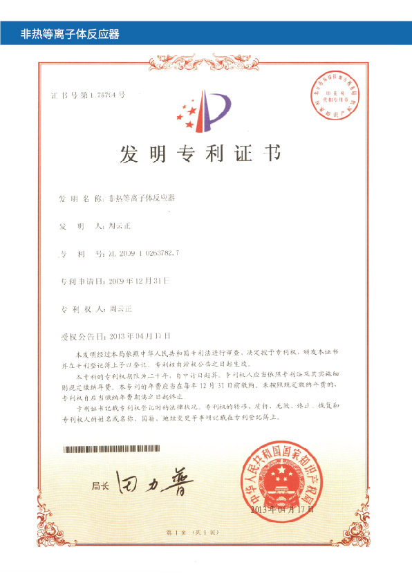 成功研发高效低臭氧低温等离子体反应器(全球首创带板结构);成功研发高压窄脉冲电源技术。